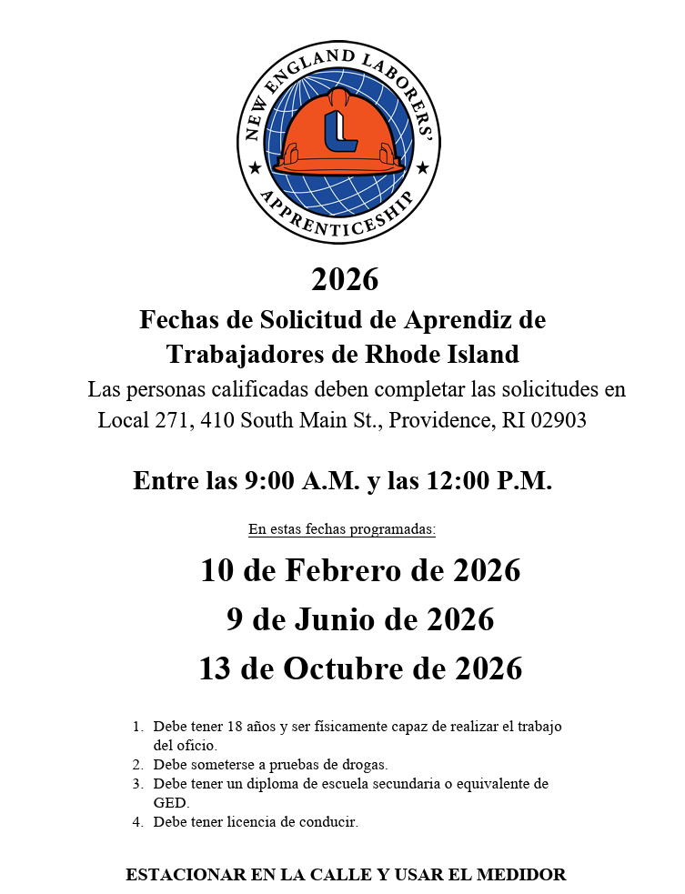 To inquire about LIUNA’s Construction Craft Laborer’s Apprenticeship Program in Rhode Island please contact: